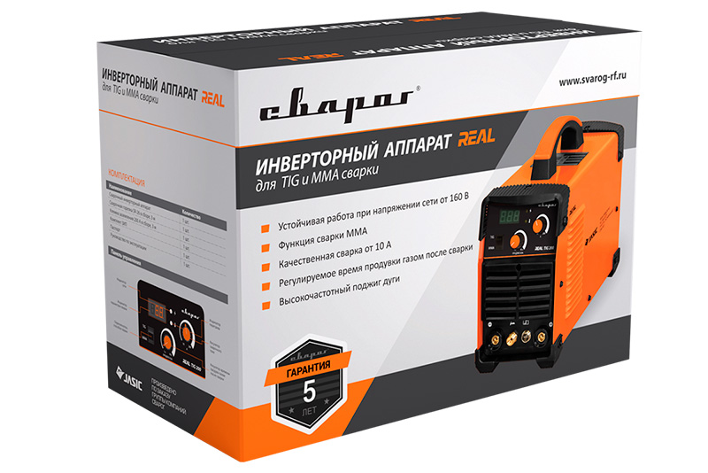 Сварочный аппарат REAL TIG 200 СВАРОГ W223 используется для аргонодуговой сварки (TIG) и ручной дуговой сварки покрытым электродом (MMA).