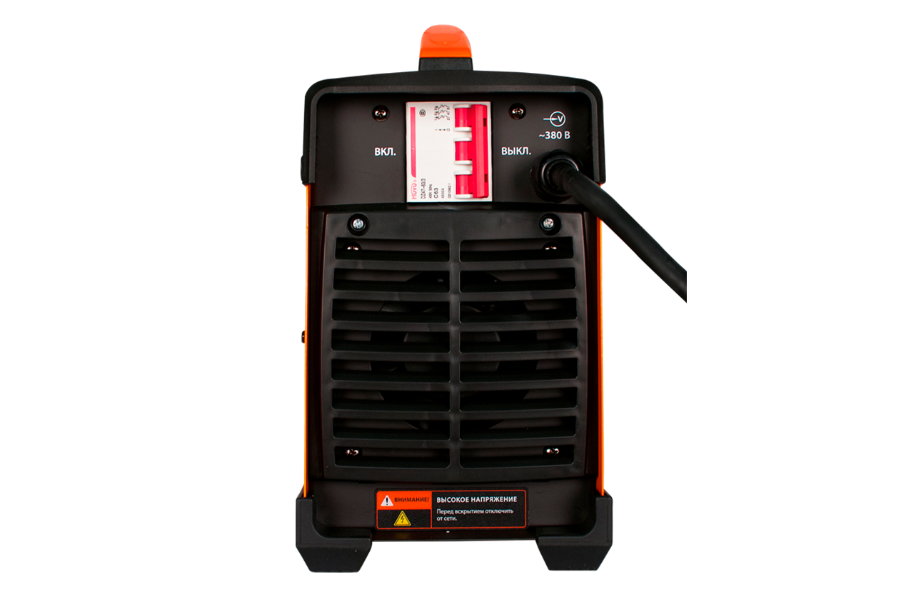 Прибор получает питание от сети 380В. Он имеет небольшие размеры и гарантирует сварку в диапазоне от 20 до 250 Ампер.