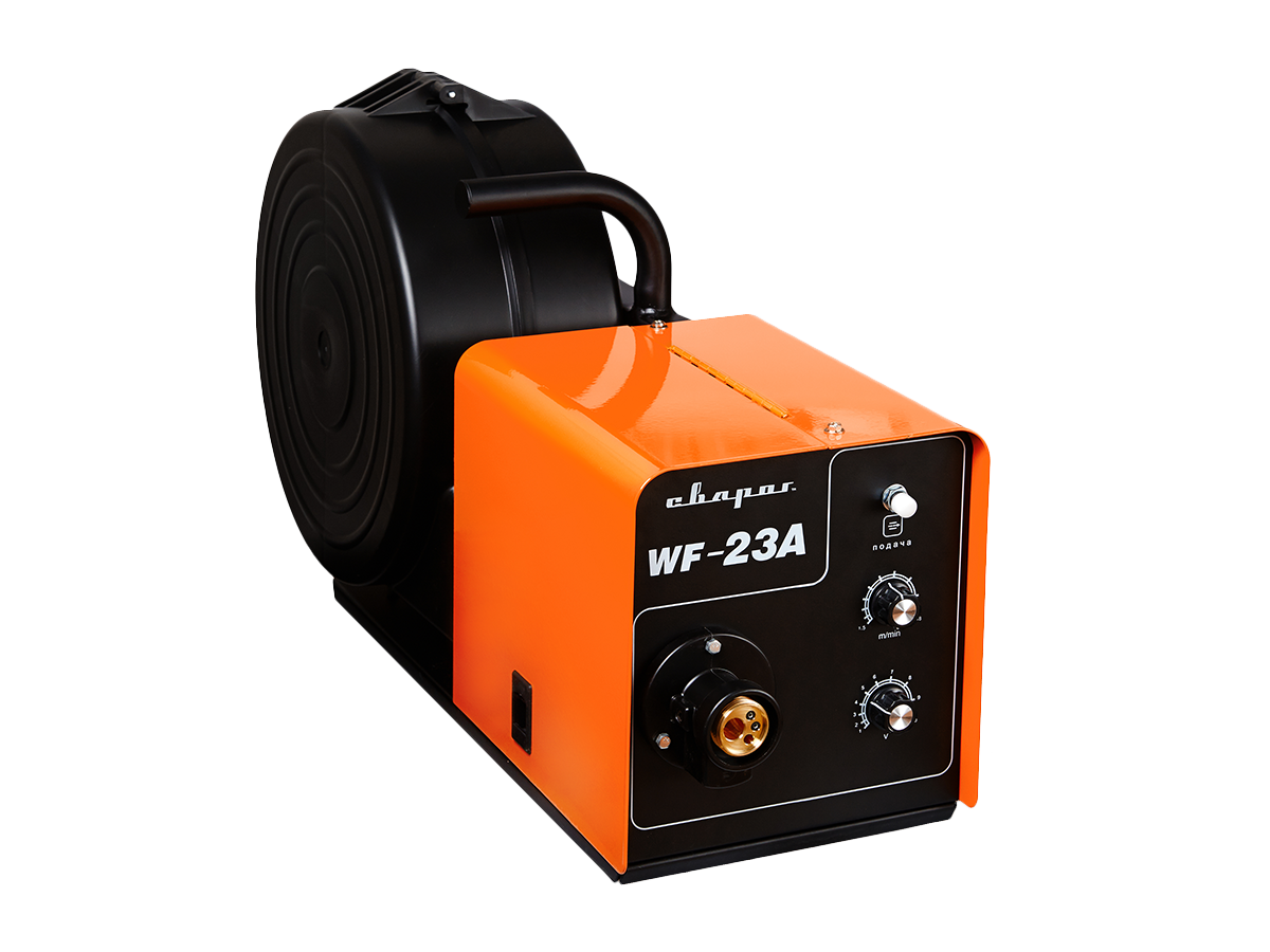 Мощный электромотор и четырехроликовый подающий механизм обеспечивает плавный и безрывковый процесс сварки.