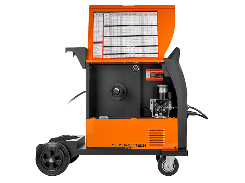 Сварочный полуавтомат TECH MIG 350 N258 используется для полуавтоматической сварки в среде защитных газов, ручной дуговой, аргонодуговой неплавящимся электродом и сварки порошковой проволокой.