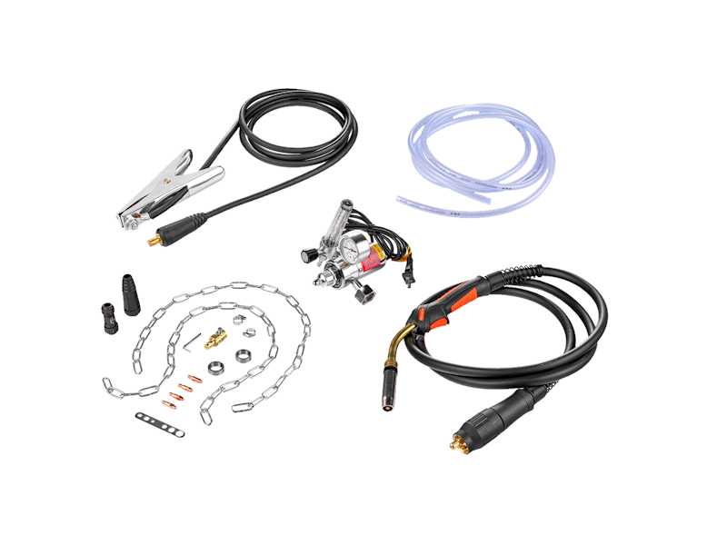 - прочный четырехроликовый металлический механизм подачи проволоки.