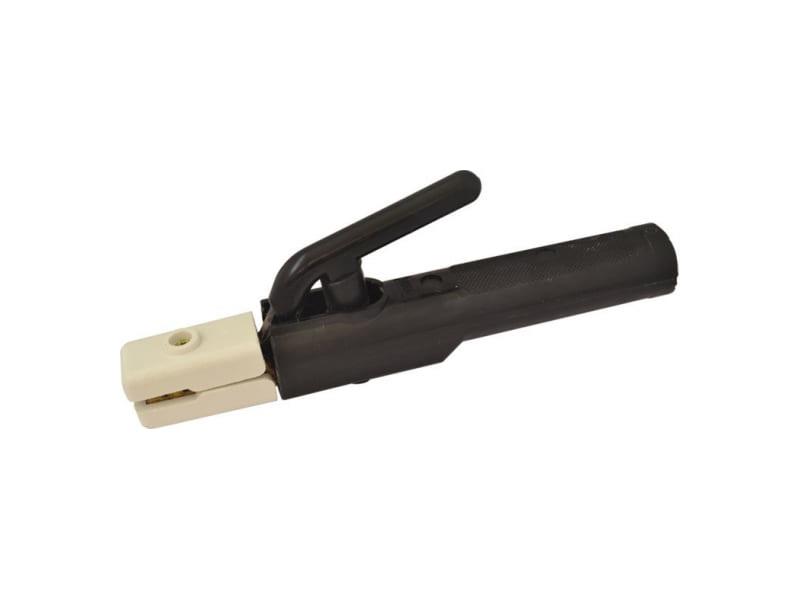 Держатель электродов ДЭ 600, 600 А используется для крепкой фиксации электрода и подачи сварочного тока. Рельефная поверхность контактных губ, дает возможность надежно держать электрод, а качественный материал корпуса защитит оператора от удара электрическим током.