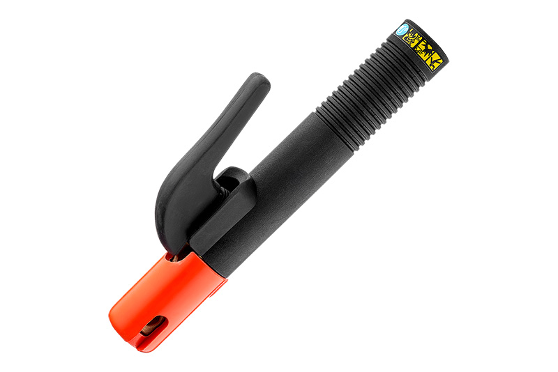 - рычажный держатель гарантирует мгновенный и надежный зажим любого типа электродных стержней, исключая их проворачивание и проскальзывание даже при работе с максимальным током;