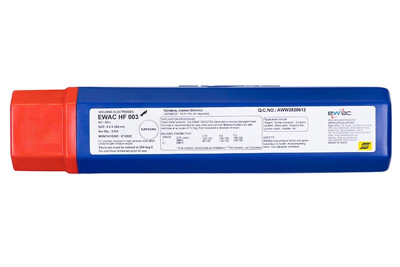 Электроды EWAC HF 003 4 мм ESAB используются для наплавки упрочняющих слоев, которые работают при интенсивном абразивном износе.