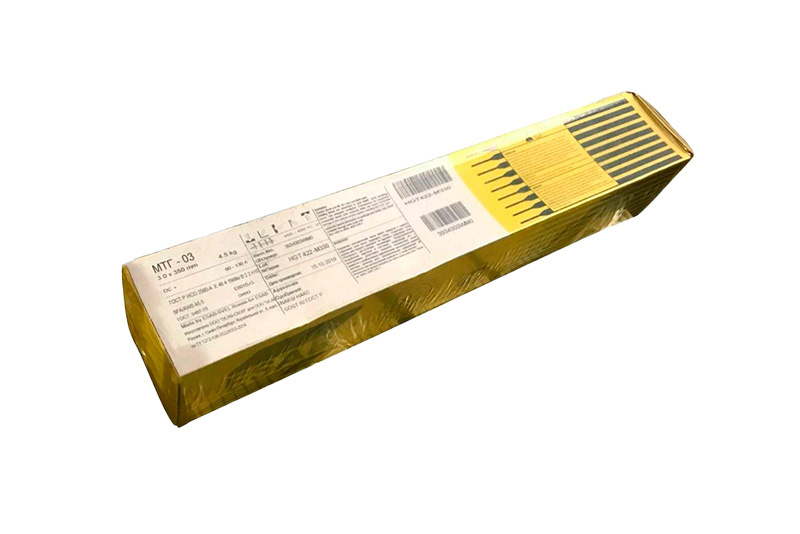 Перед применением сварочные электроды МТГ-03 d 3,0x350 мм ESAB 4,5 кг нужно прокалить при температуре 360-400°С в течение 1 часа. Ток: = (+). Пространственные положения при сварке: 1, 2, 3, 4, 6.