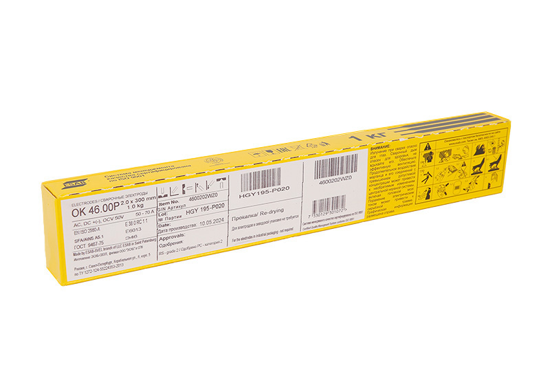 Характеристики сварочных электродов ОК 46.00Р диаметр 2.0 мм ESAB вес 1 кг