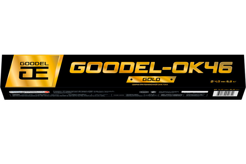 Сварочные электроды ОК-46 GOLD d 4,0 мм 6,8 кг GOODEL используются для сварки рядовых и ответственных конструкций из углеродистых и низколегированных сталей с временным сопротивлением разрыву не менее 451 МПа.