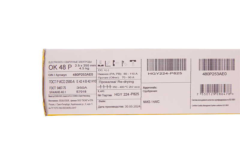 Расшифровка: ОК – инициалы создателя компании ESAB Оскара Кьелльберга. Число 48 - максимальная нагрузка, которую может испытывать шов, полученный после использования электродов.