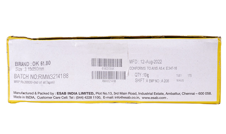Сварочные электроды OK 61.80 Ø 3.15 мм вес 2 кг VacPac ESAB общетехнического значения используются для сварки изделий из карбидостабилизированных аустенитных хромоникелевых сталей марок 12Х18Н9Т, 12Х18Н10Т, 1.4550, 1.4912, ASTM: 321, 347 и им аналогичных при предъявлении к металлу шва жестких требований по стойкости к межкристаллитной коррозии.