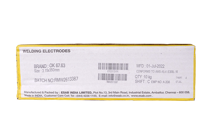 Сварочные электроды OK 67.63 d 3.15x350 мм VP ESAB 2 кг предназначены для сварки низкоуглеродистых и низколегированных конструкционных сталей перлитного класса с высоколегированными сталями аустенитного класса типа 03Х18Н10, 08Х18Н9, 08Х18Н10Т, 02Х17Н11М2, 08Х17Н13М2Т, 10Х17Н13М3Т, ASTM 304L, 321, 347, 316, 316L, 318 и им аналогичных с различными высоколегированными сталями ферритного и феррито-мартенситного класса.