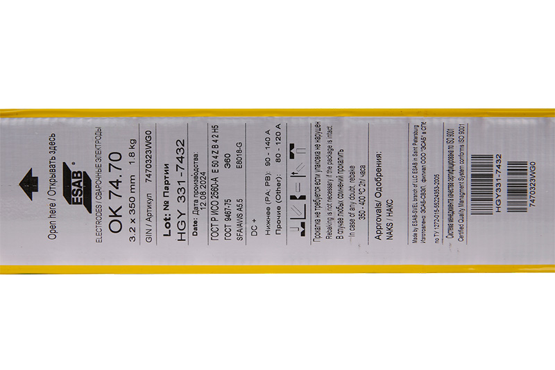 Электроды ОК 74.70 d 3.2х350 мм VacPac ESAB (1,8 кг) 7470323WG0