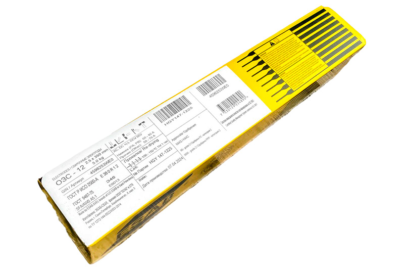 Сварочные электроды ОЗС-12 диаметр 2.5 мм ESAB вес 5 кг используются для сварки изделий из конструкционных низкоуглеродистых и низколегированных сталей с содержанием углерода до 0,25%.