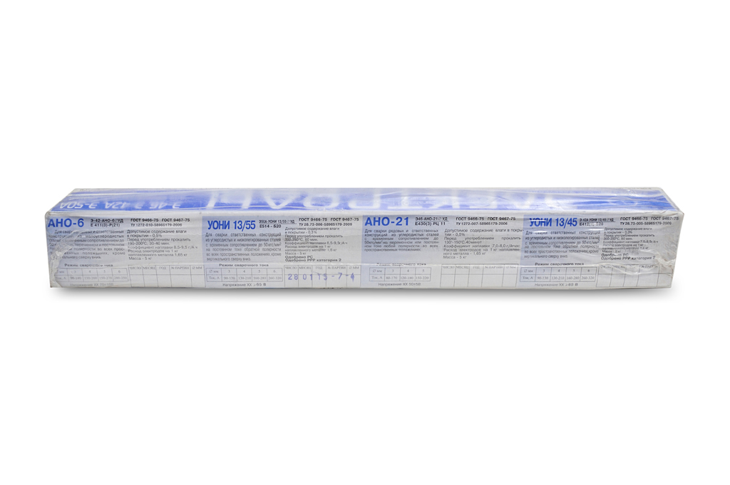 Сварочные электроды УОНИ-13/55 d 4,0 мм БОР 5 кг с основным покрытием применяются для сварки особо ответственных конструкций из углеродистых и низколегированных сталей в случае предъявления к металлу швов повышенных требований по пластичности и ударной вязкости.
