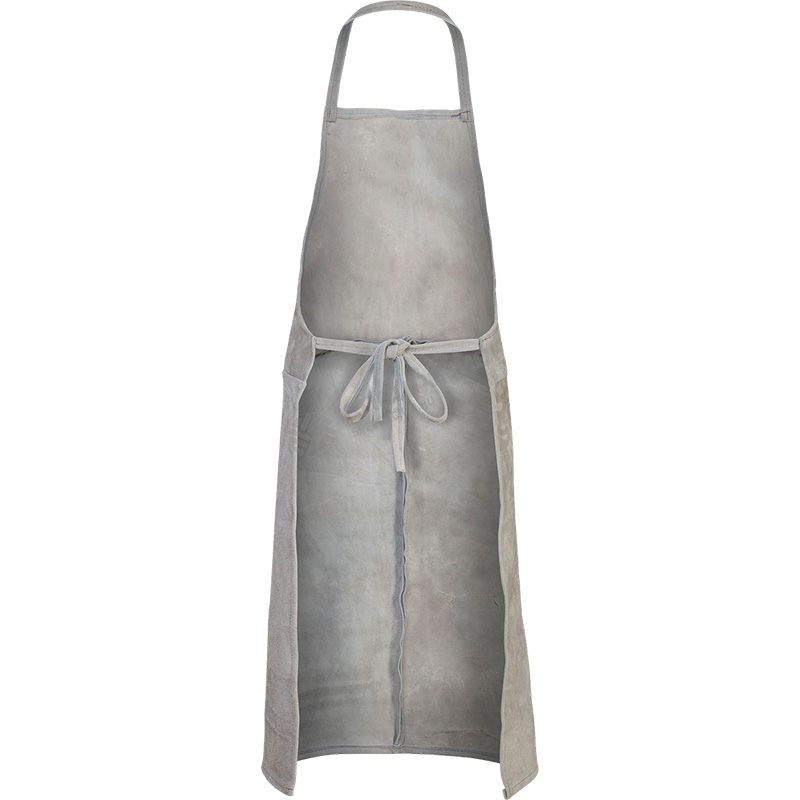 Цельнокроенный серый защитный фартук с нагрудником производства АВЕРС НН используется для защиты тела от сплошного потока раскаленных брызг и искр, образующихся при сварочном процессе.