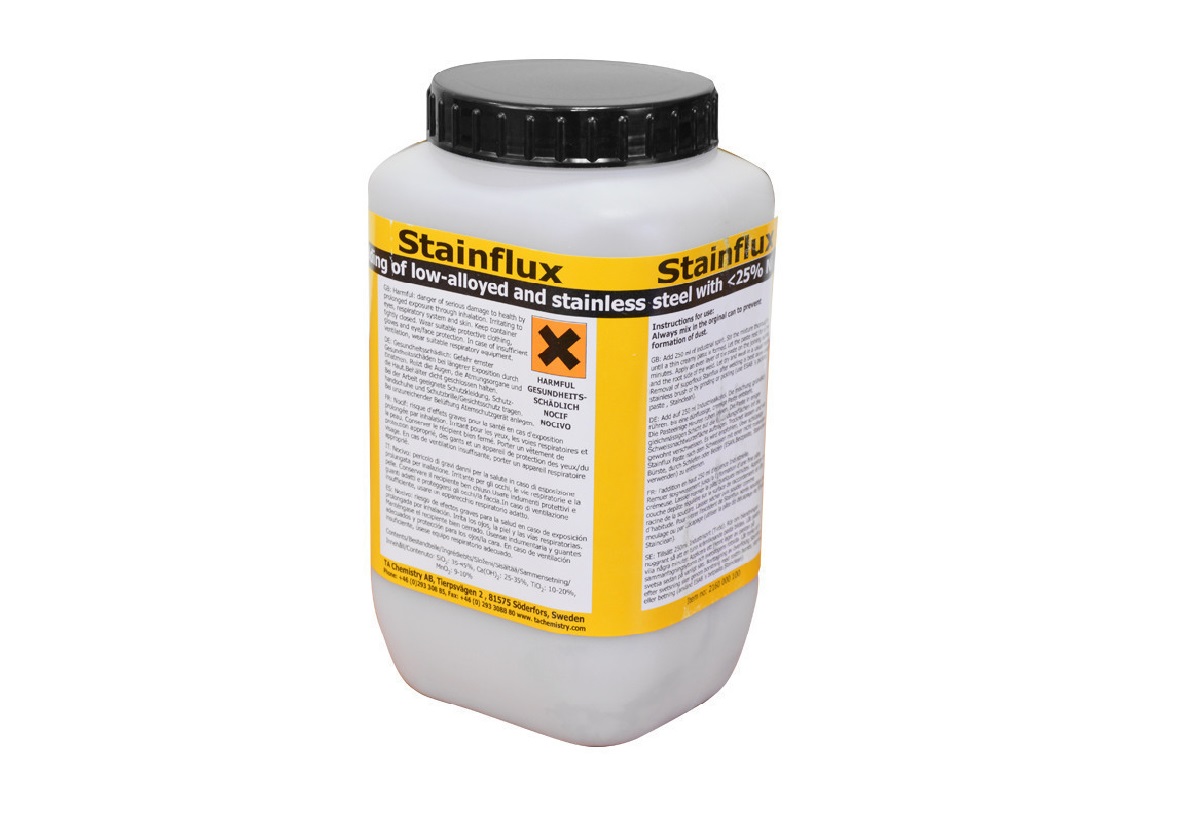 Stainflux поставляется в порошкообразной форме и смешивается с денатурированным этанолом перед началом работ. Флюс не следует применять для замены защитного газа.
