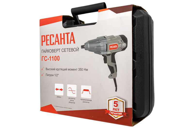 Сетевой гайковёрт ГС-1100 Ресанта - это специализированный электроинструмент, созданный для затяжки и откручивания крупного крепежа. Возможно использование для соединения массивных металлоконструкций.