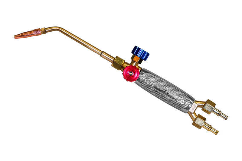 - кислородно ацетиленовая горелка работает по принципу подсоса ацетилена струей кислорода, что обеспечивает стабильное пламя и безопасность;
