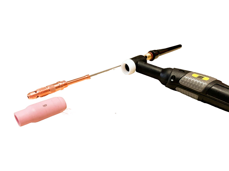 Горелка TIG позволяет работать с вольфрамовыми электродами диаметром до 4 мм.