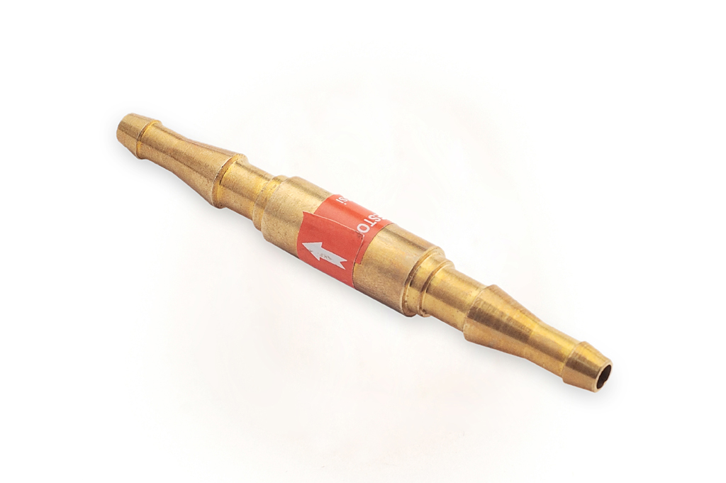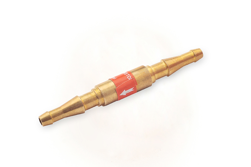 Ацетилено- пропановый обратный клапан 3П-3К ёлочка - ёлочка используется для предотвращения противотока в газовом рукаве. Его необходимо устанавливать на вход резака или горелки.