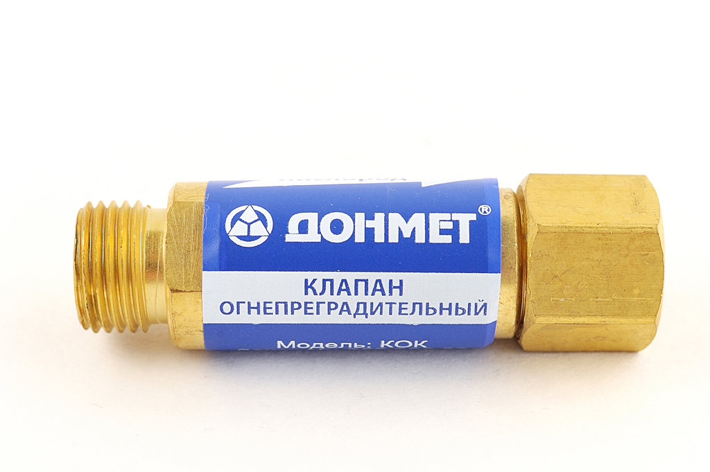 Огнепреградительный кислородный клапан КОК М16х1,5LH Донмет используется для предотвращения обратного удара горючей смеси и обратного тока газа при газопламенных работах. Его необходимо устанавливать в системах газоснабжения между редуктором и резаком (или горелкой).