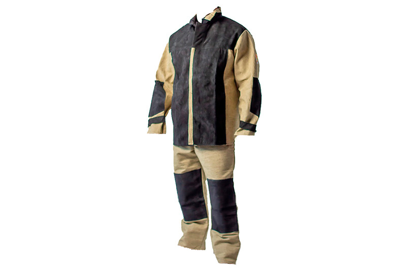 - конструкция куртки выполнена по принципу комбинирования материалов (брезент спилок): основные детали изготавливаются из огнестойкого брезента, а наиболее уязвимые для искр и брызг металла зоны усилены негорючей кожей-спилком, что обеспечивает повышенную стойкость к прожогам и увеличивает эксплуатационный ресурс;