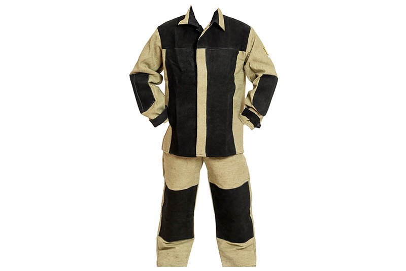 Материалы изготовления - брезент (из него выполнена основа) и спилок КРС (негорючие накладки общей площадью 1.5 м²).