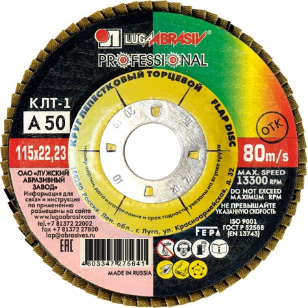 Лепестковые торцевые круги 115х22 А50 LUGA ABRASIV используются для обработки труднодоступных мест, торцевого и плоского шлифования деталей и конструкций из разных марок сталей, цветных металлов, древесины и пластика. Износ шлифовальной шкурки происходит равномерно по всей рабочей поверхности, что и приводит к значительному увеличению производительности при шлифовании.