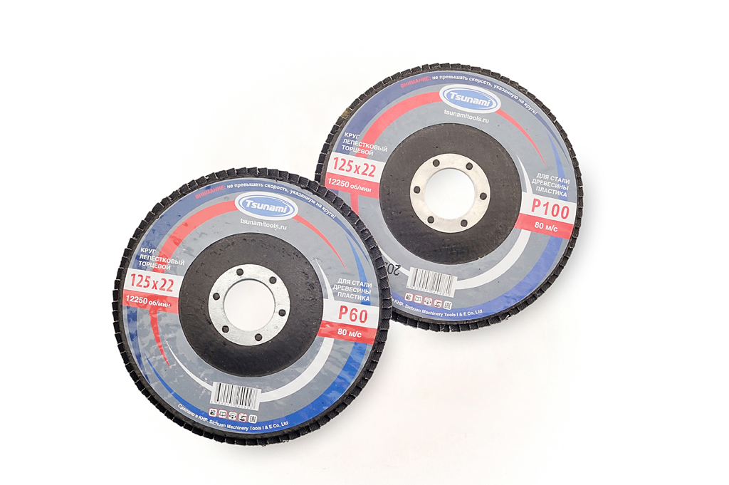 Лепестковые торцевые круги 125х22 А60 TSUNAMI - это современный, удобный и эффективный инструмент. Они представляют собой полоски (ламели) из абразивного материала на тканевой основе, которые равномерно и прочно закрепляются на торцах дисков, имеющих плоскую или слегка выпуклую форму. Круги используются для установки в ручных углошлифовальных машинах («болгарках»).