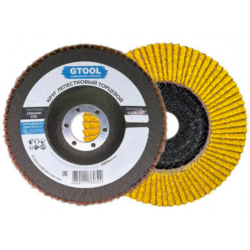Круг лепестковый торцевой GTOOL TOP d 125, P60 (керамика + стеарат)