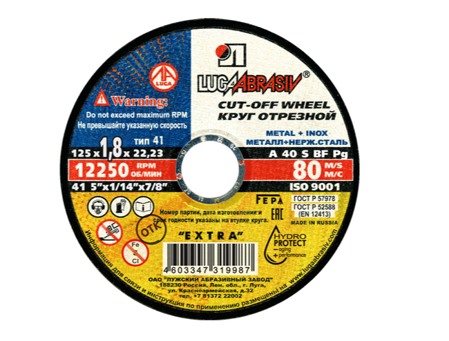 Отрезные круги 125Х1,8Х22 LUGA ABRASIV изготавливаются по уникальной технологии, не имеющей аналогов во всем мире. Равномерное распределение массы и армирующего материала в круге позволяет иметь невысокий дисбаланс, увеличенную эластичность и гибкость кругов. Это важно при резании разных профильных материалов. Стойкость тонких кругов находится на уровне с кругами большей высоты, а в некоторых случаях и превосходит её.