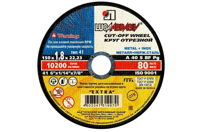 Отрезные круги 150Х1,8Х22 LUGA ABRASIV изготавливаются по уникальной технологии, не имеющей аналогов во всем мире. Равномерное распределение массы и армирующего материала в круге позволяет иметь невысокий дисбаланс, увеличенную эластичность и гибкость кругов. Это важно при резании разных профильных материалов. Стойкость тонких кругов находится на уровне с кругами большей высоты, а в некоторых случаях и превосходит её.