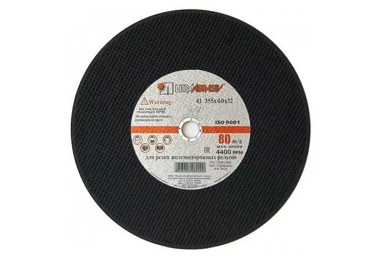 Отрезные круги 355x4,0x25,4 LUGA ABRASIV рельс. изготавливаются по уникальной технологии, не имеющей аналогов во всем мире. Равномерное распределение массы и армирующего материала в круге позволяет иметь невысокий дисбаланс, увеличенную эластичность и гибкость кругов. Стойкость тонких кругов находится на уровне с кругами большей высоты, а в некоторых случаях и превосходит её.