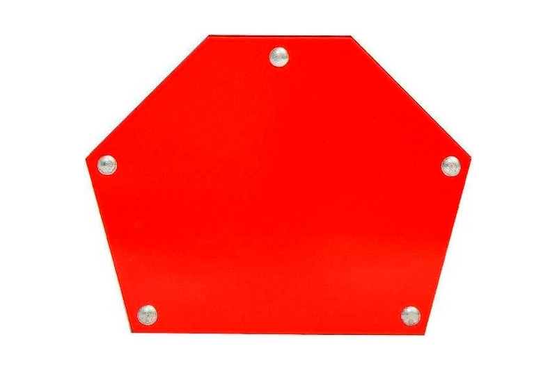 Красный магнитный фиксатор МФ 402 с усилием 25 кг используется для фиксации металлических деталей и точного выставления углов при сварке и других монтажных работах.