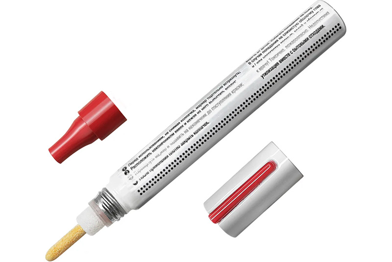 Маркер с нитроэмалью оставляет яркий, непрозрачный след, который не стирается и не выцветает со временем, гарантируя четкость разметки на протяжении всего производственного цикла.