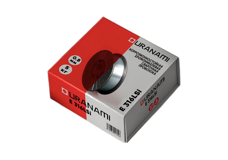 Проволока нержавеющая URANAMI d 0.8 мм ER 316LSi 5 кг используется для полуавтоматической сварки (MIG/MAG) аустенитных нержавеющих сталей c примесями Cr - 18%, Ni - 8% и Mo - 3% типа 03Х17Н14М2, 10Х17Н13М3Т, 316 и др. в среде защитных газов (Ar) на постоянном токе.