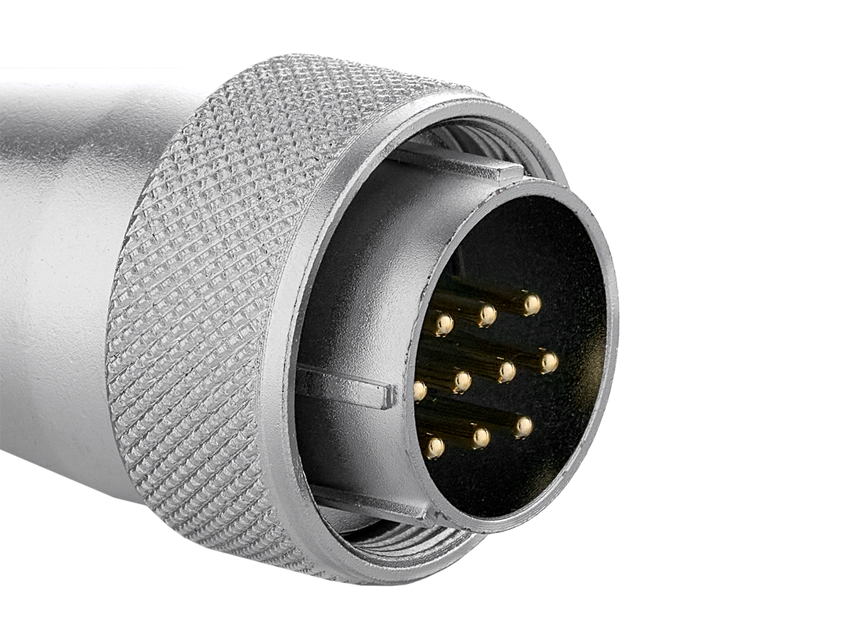 10 контактный кабельный разъем выполнен по стандарту «папа» (вилка). Он стыкуется с соответствующим гнездовым разъёмом на аппарате или удлинительном кабеле.