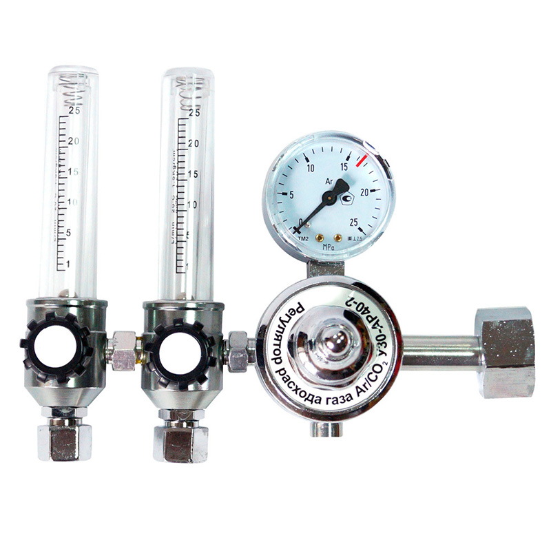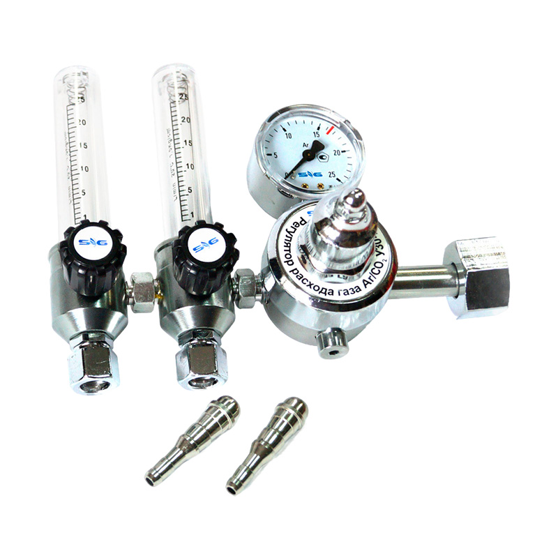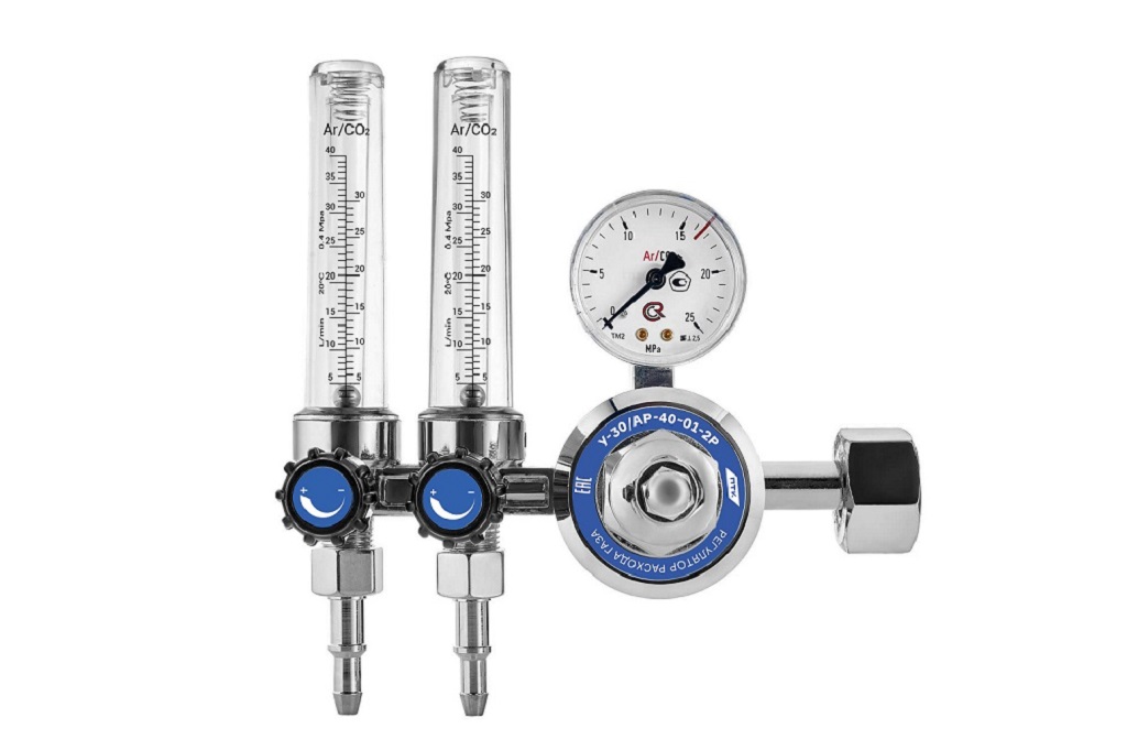 Регулятор расхода газа У-30/АР-40-2 SG с двумя ротаметрами используется для понижения давления газа, поступающего из баллона, и автоматического поддержания заданного расхода постоянным при подаче на электросварочный пост.