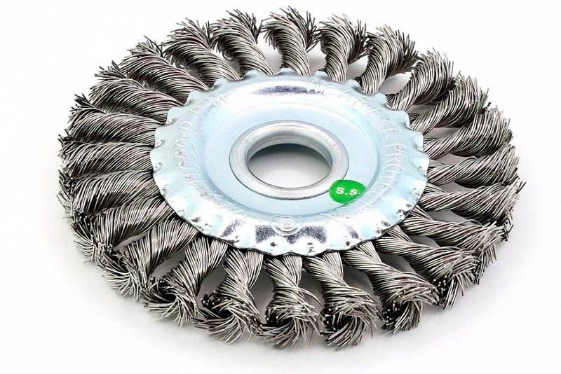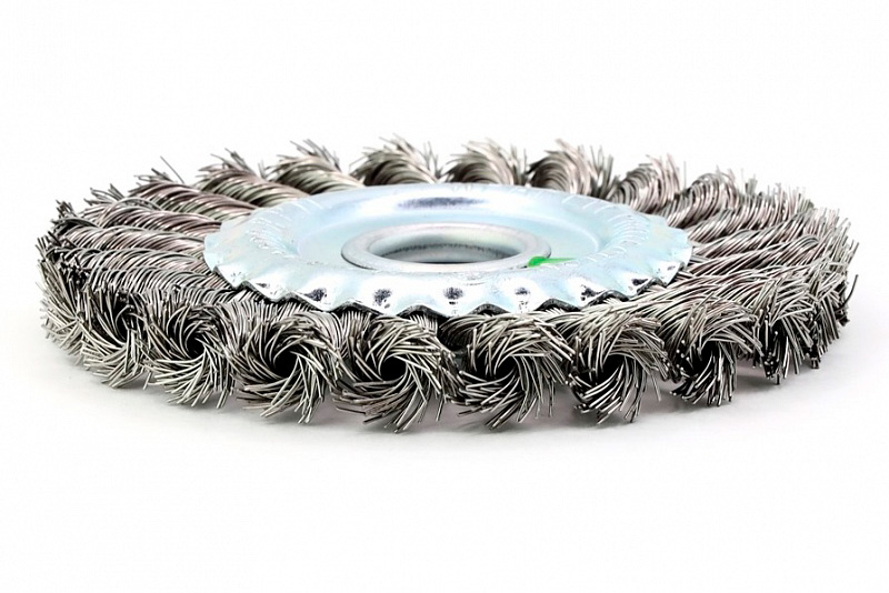 Дисковая жгутовая щетка для ушм 125x22 ОСБОРН предназначена для тяжелых зачистных работ по изделиям из нержавеющей стали. Щетка получила широкое распространение в применении для зачистки сварных швов.