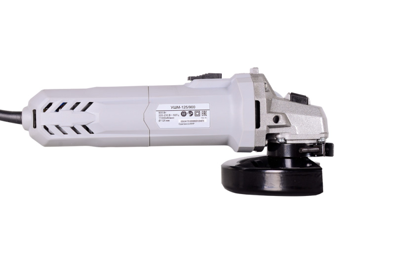 - мощности двигателя в 900 Вт достаточно для уверенной работы с дисками диаметром 125 мм по металлу и камню;