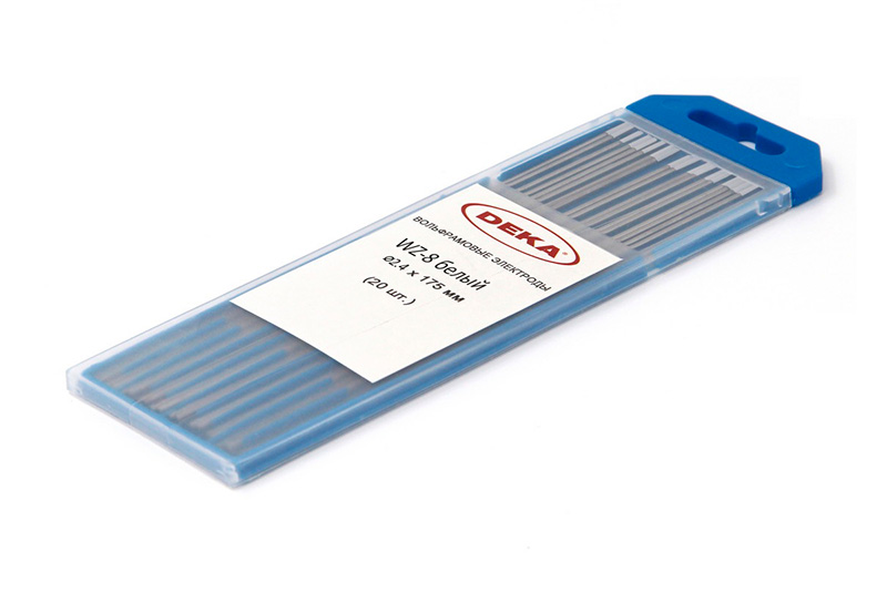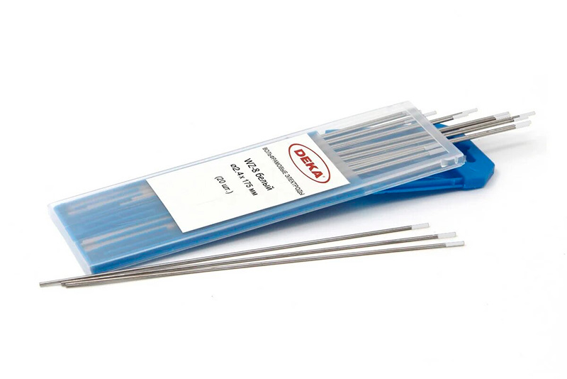Белые вольфрамовые электроды DEKA WZ-8 диаметр 2.4 175 мм применяются для сварки TIG. Защитный газ - аргон или гелий.