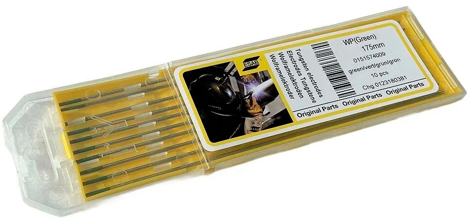 Вольфрамовые электроды Tungsten Pure 1x175 мм ESAB используются в основном для аргонодуговой сварки легких сплавов на синусоидальном переменном токе.