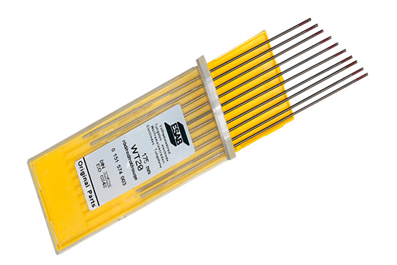 Вольфрамовые электроды Tungsten WT20 3.2x175 мм ESAB применяются для TIG сварки на постоянном токе прямой полярности.